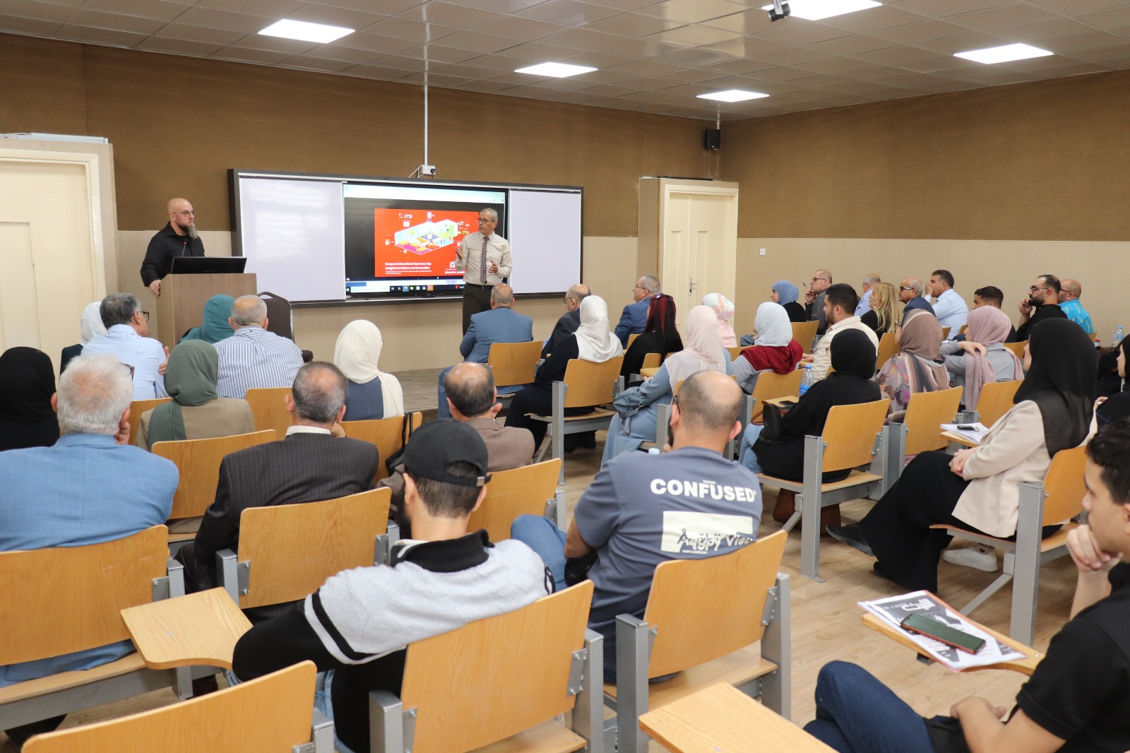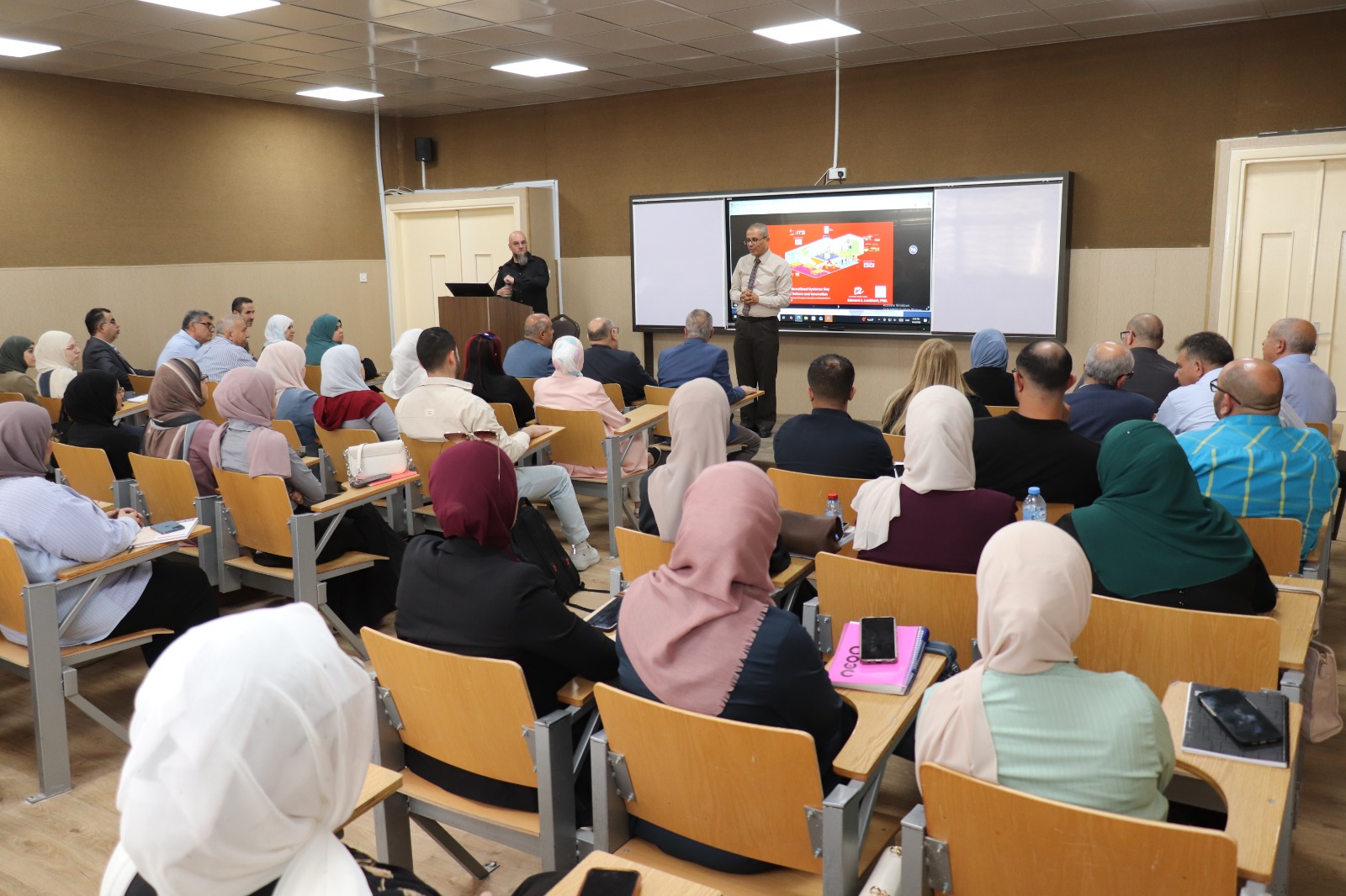 وشهدت القاعة حضورًا لافتًا ضمّ أعضاء هيئة التدريس من مجتمع جامعة اليرموك وطلبة الدراسات العليا، في خطوة تهدف إلى نقل الخبرات الدولية وإثراء الحوار المحلي حول تطوير البرامج التربوية".
