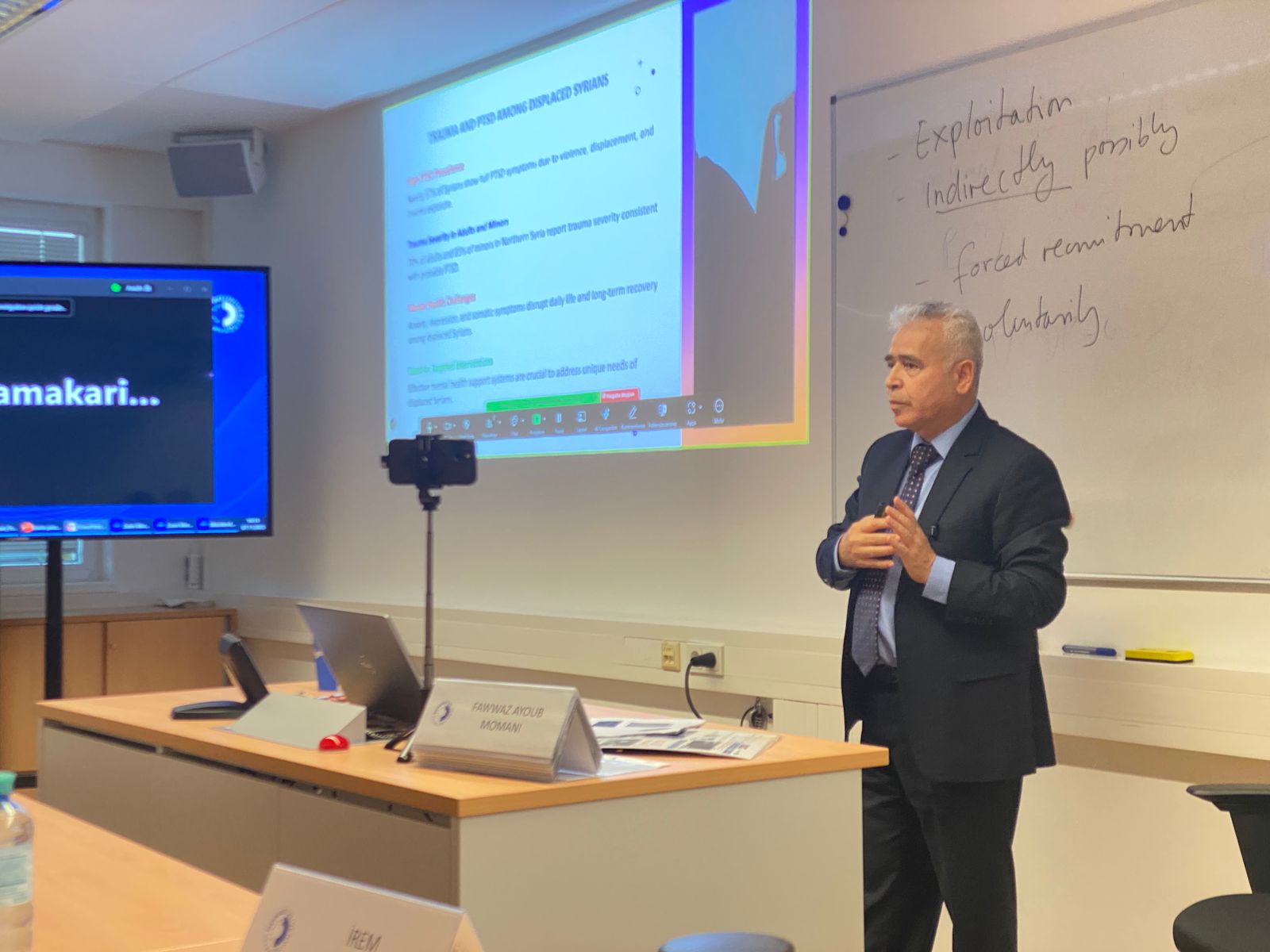 شارك الأستاذ الدكتور فواز أيوب المومني من كلية العلوم التربوية في اطلاق مشروع دبلوم إدارة الهجرة الدائرية والعودة Diploma in Circular and Return Migration Management التي تنظمه جامعة كريمس النمساوية بالتعاون مع ملتقى ميونخ للحوار والممول من الاتحاد الاوروبي. وقدم المومني محاضرات متخصصة في الأثار النفسية والاجتماعية والاضطرابات النفسية التي يعاني منها اللاجئون بشكل عام وخاصة اللاجئون السوريون، وذلك خلال الظروف التي سبقت اللجوء وإثناءه والضغوط والثانوية في بلد اللجوء . كما قدم المومني عرضا تفصيليا بأعداد اللاجئين السوريين العائدين من دول الاتحاد الأوروبي والأردن، وتركيا والعراق ومصر ولبنان. واستعرض المومني سيناريوهات العودة الطوعية ومحفزات العودة ومعوقاتها. كما استعرض المومني التقارير الأممية المتعلقة باتجاهات اللاجئين السوريين في أوروبا والشرق الأوسط نحو عودة اللاجئين السوريين بعد سقوط النظام. وقدم جانباً من المحاضرات المتخصصة لمشاركين عامليين في المنظمات الدولية والمحلية في أوروبا والعراق وتركيا ولبنان والأردن.