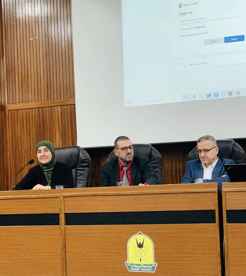 وقام الدكتور علاء المخزومي بتقديم وعرض موجز حول كيفية دخول الطلبة لمواقعهم الالكترونية للقيام بالاختبار التجريبي والذي يحاكي امتحان الكفاءة.