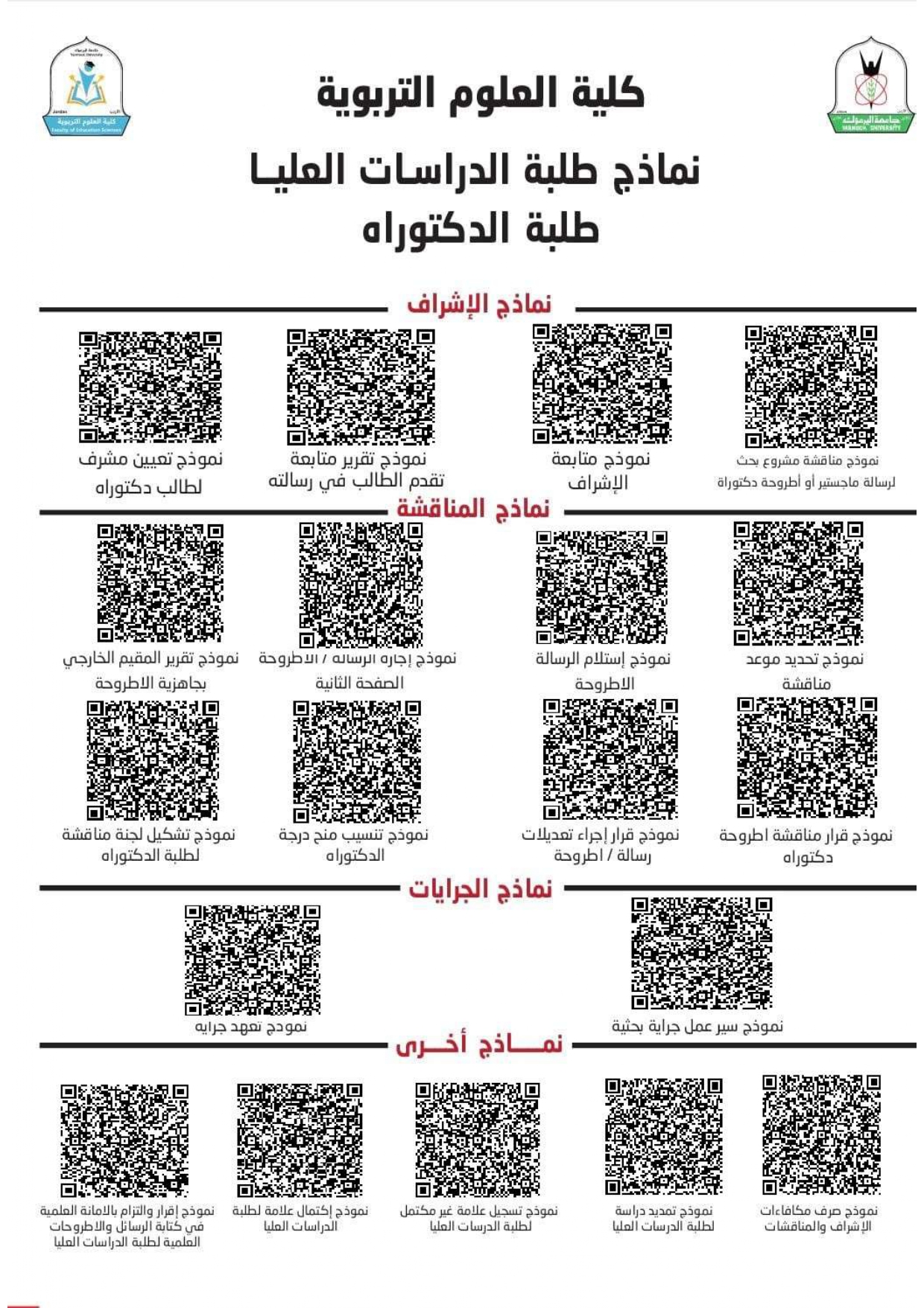 وبدوره أشار أ.د. هادي محمد الطوالبة نائب العميد لشؤون البحث العلمي والدراسات العليا إلى أن كلية العلوم التربوية قامت بإنشاء QR Code مخصص لجميع نماذج الدراسات العليا المطلوبة (نماذج المناقشة، نماذج الإشراف، نماذج الجرايات، نماذج أخرى)، وتم إلصاق ستكرات تحتوي على QR Code في جميع أقسام الكلية، وعلى الموقع الإلكتروني للكلية، وصفحة الكلية على الفيسبوك.